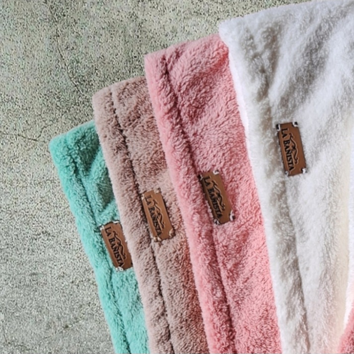 Terminas de lavarte el pelo con tu shampoo y acondicionador de La Bañista y, antes muerta que sencilla, te cubres la cabeza con esta toalla secadora de pelo de felpa deliciosa y sales del baño, impresionando con tu estilo. Hay en cuatro colores: blanco, rosado, verde agua y beige.